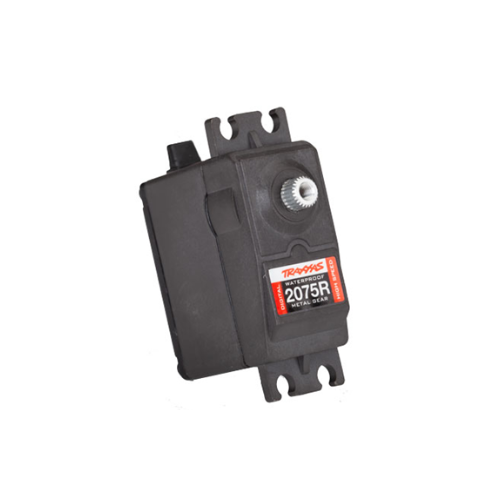 The 2075X and 2075R servos feature standard motors and metal gears. The 2075X servo is commonly found in TRX-4 models, offering maximum torque. In contrast, the 2075R servo is specifically geared for greater speed and is a standard component of the Slash 4X4 Ultimate. Both the 2075X and 2075R servos are fully waterproof, ensuring their reliability even in wet conditions.