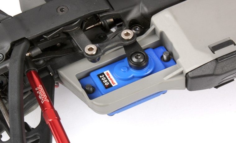 Traxxas’ top-performing servo is the High-Torque 400 Red. This waterproof, premium servo is equipped with a powerful brushless motor that allows it to deliver 400 oz.-in. of torque at six volts. Like the 330 Blue, it has an aluminum heatsink mid-case, metal gears, and dual ball bearings.