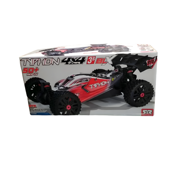 Making your move into brushless 1/8 scale Speed Buggy action has never been easier. Fast, rugged and factory-built, the 3S LiPo-compatible ARRMA® TYPHON™ 4X4 3S BLX RTR comes ready out of the box to bash on any terrain. Precision aluminum, tough steel and composite materials come together for an easy-to-maintain, super-durable vehicle design whose high downforce wing and low center of gravity, with wide arms and narrow wheels and tires, improve handling over race tracks, trails, muddy courses, skate parks and more. This version features new equipment that further increases the original buggy’s already impressive performance and durability.