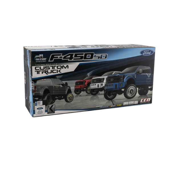 The Ford F450 SD KG1 Edition 1/10 RTR Custom Dually Truck by CEN is a meticulously designed RC truck that blends realism with high-performance engineering