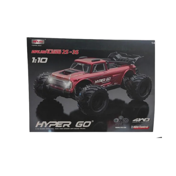 MJX 1/10 Hyper Go 4WD Brushless RC Monster Truck (specifically model 10208 V2) is a high-speed, durable electric radio-controlled truck designed for both beginners and experienced bashers.