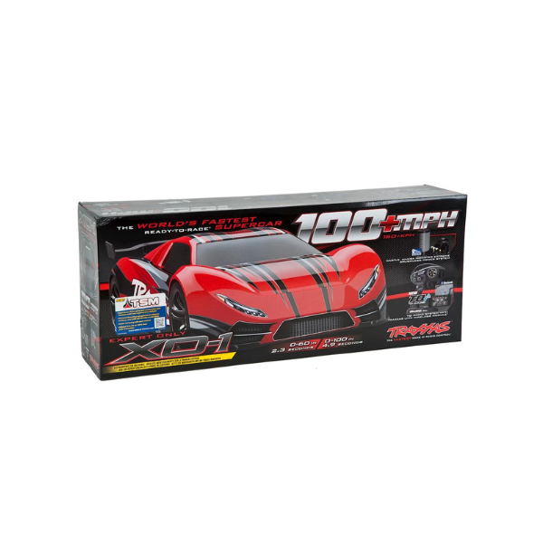 The Traxxas XO-1 is the fastest and most outrageous Ready-to-Race RC car ever created. From a dead stop, 60mph flashes by in 2.3 seconds. Keep the throttle pegged and you’ll smash the 100mph barrier in 4.92 seconds.