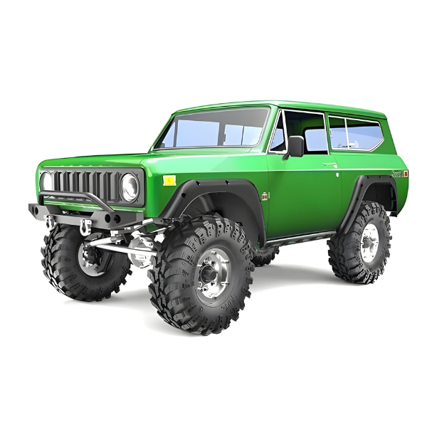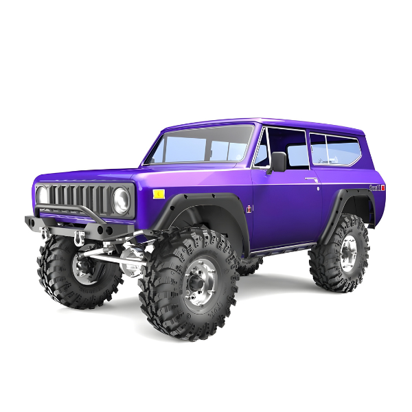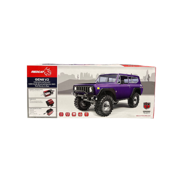 The Gen8 V2 features a highly detailed fully licensed International® Scout II body, hard plastic grill, plastic folding mirrors, molded inner and outer fenders, shackle mount front bumper, receiver hitch ready rear bumper, and plastic rock sliders