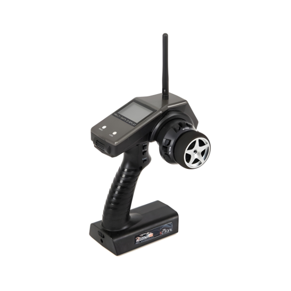 - Transmitter: DragonRc 2.4 GHz steering wheel type transmitter with plenty of settings and good range. Comes with small and light receiver.