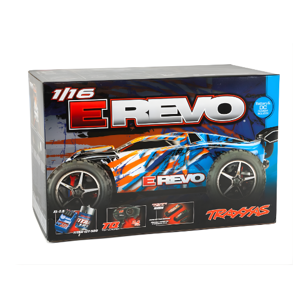 Traxxas sets the standard for power, performance and innovation. All the quality and waterproof capability you expect from Traxxas is available in 1/16 scale with the 1/16 E-Revo. At 14 inches long, this E-Revo is about half the size of the 1/10-scale E-Revo.